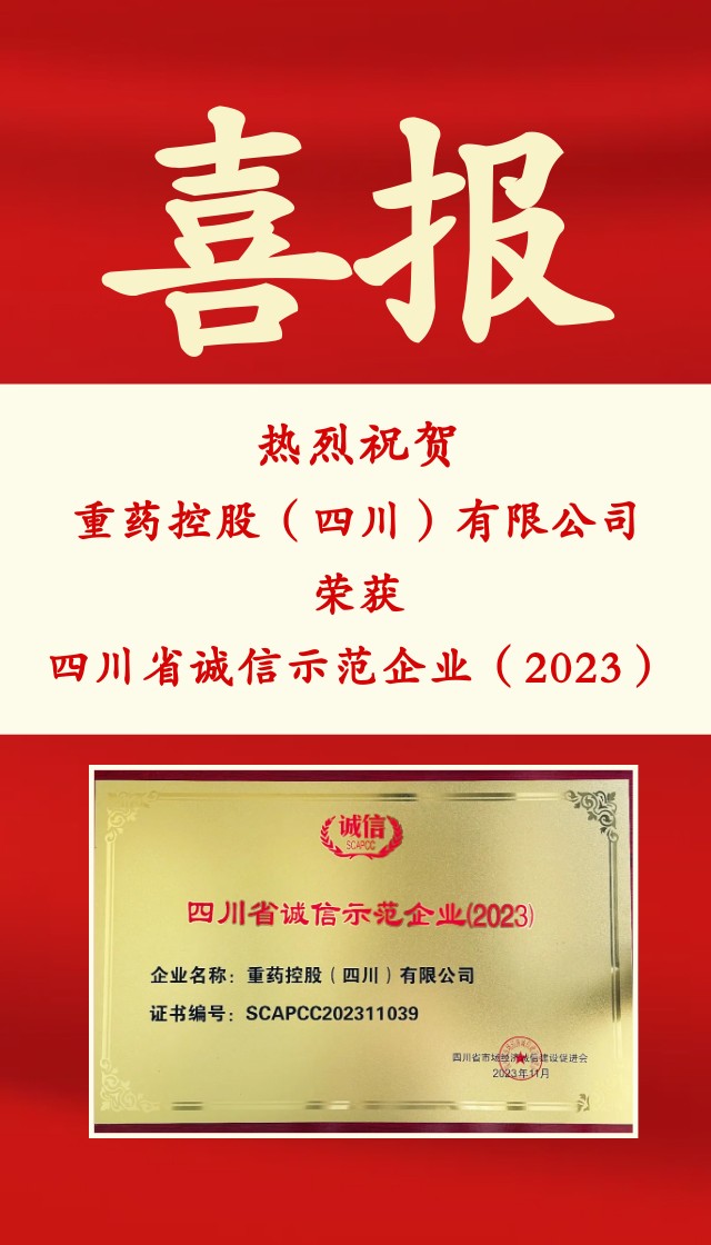 喜報丨重控四川榮獲2023年四川省誠信示范企業